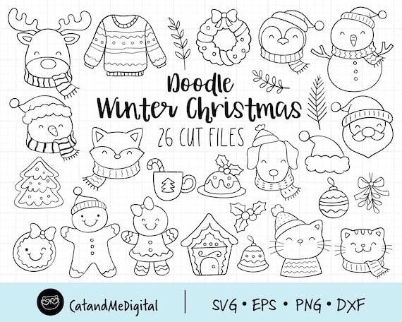 Doodle winter svg Kerst svg Kerstdecoratie svg Doodle svg Dier