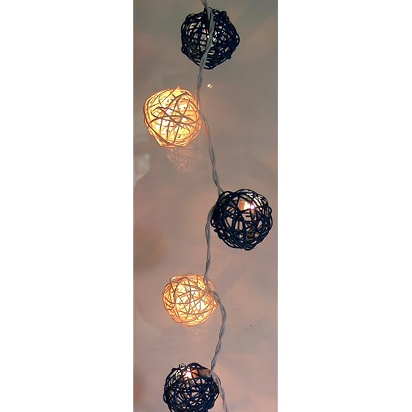 GURU SHOP Rattan Ball LED Kugel Lampion Lichterkette Türkis/weiß