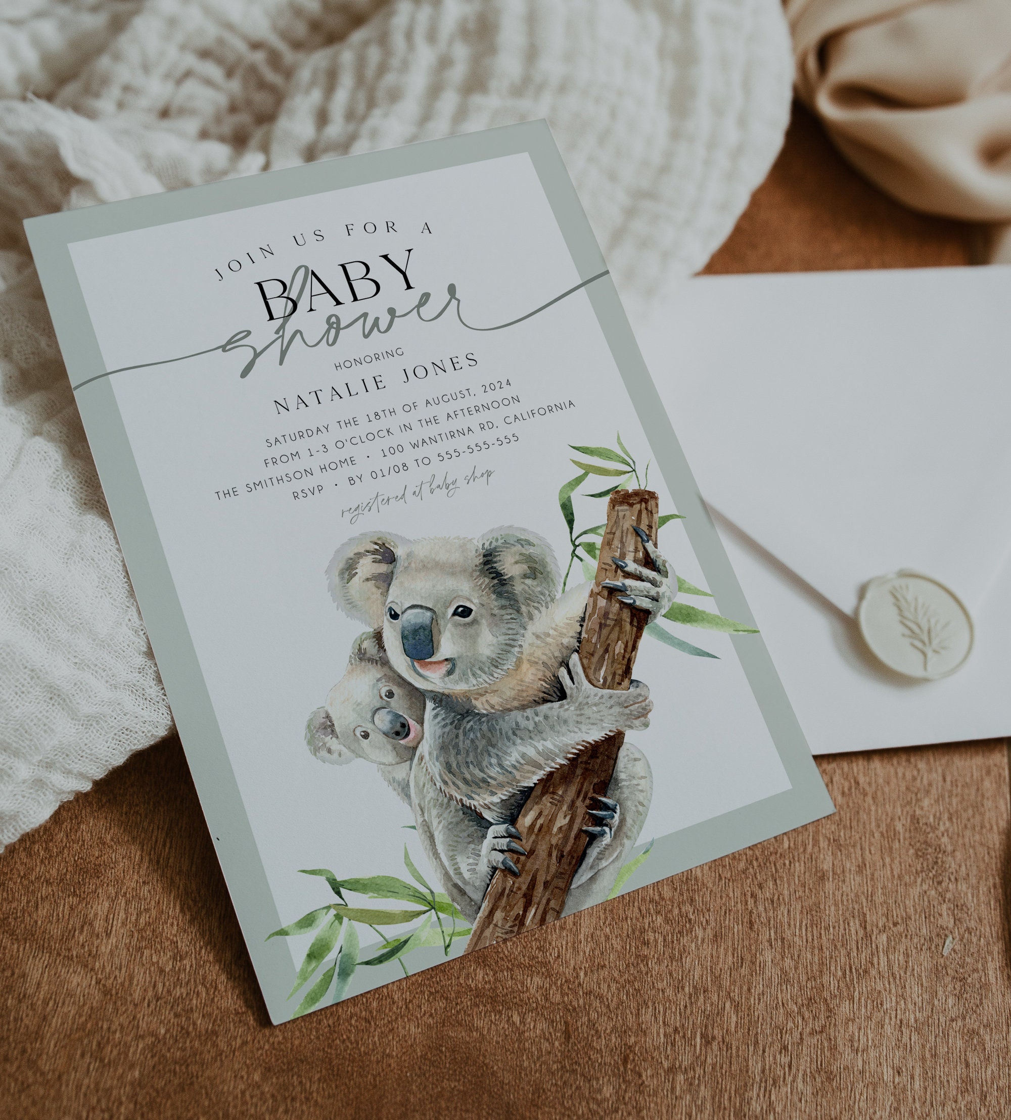 Koala Baby Shower Editable Invitation Template Australian Etsy